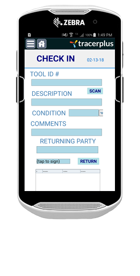 TheTool Crib Inventory Tracking application for TracerPlus Android maintains a record of all your tools, including tool location, condition, and check-out information.